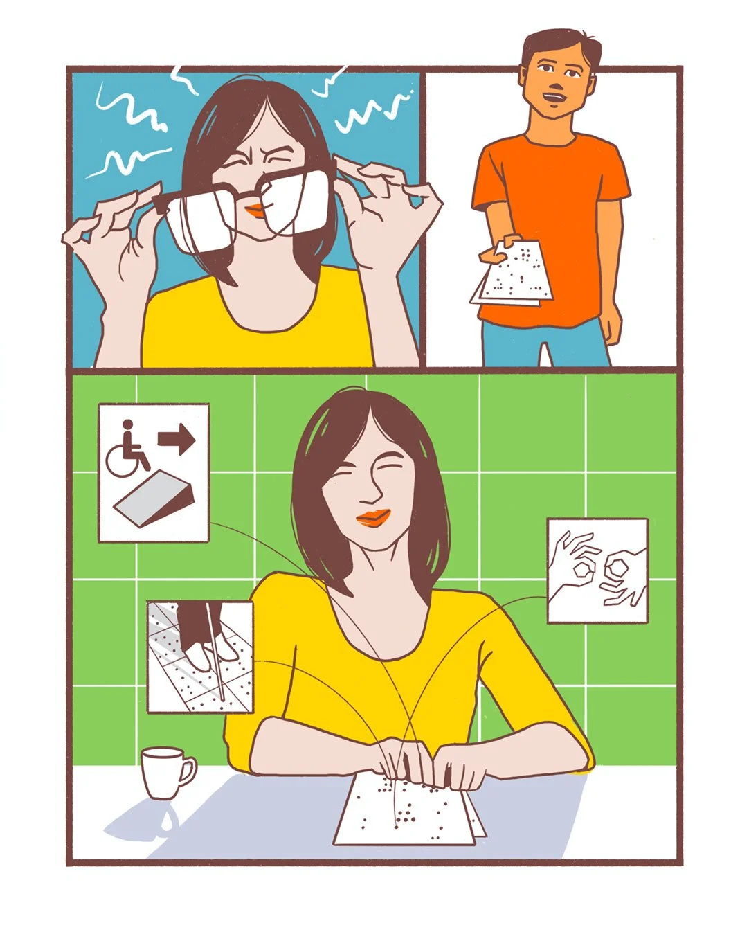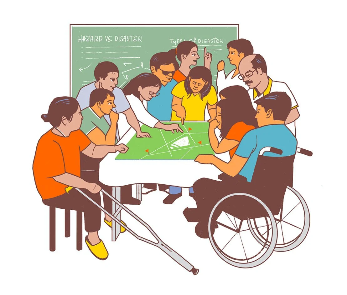 Series of 12 illustrations for an e-learning course about Disability-Inclusive Disaster Risk Reduction. Client: A2D, United Nations Economic and Social Commission for Asia and the Pacific (UNESCAP)